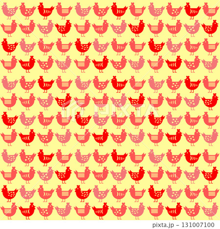 北欧風ニワトリ柄のシームレスパターン背景(イエローベース✖️レッド)