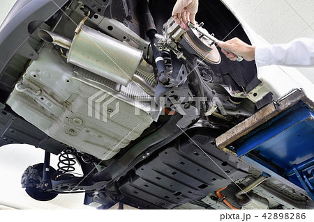 整備中の自動車