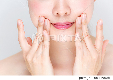 頬を触る女性 ビューティー