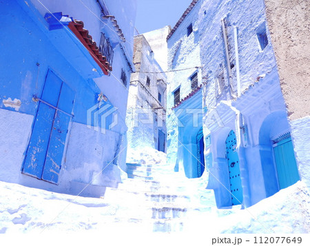 モロッコ リフ山脈の北麓にあるシャウエン 青の街の風景