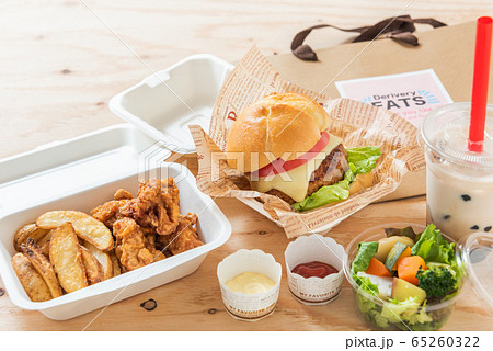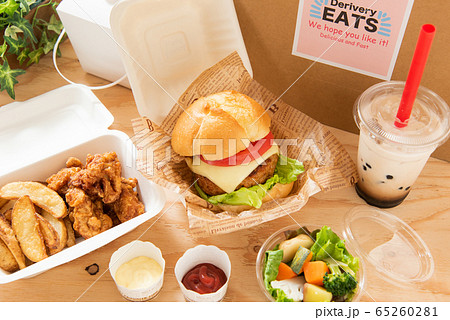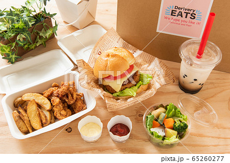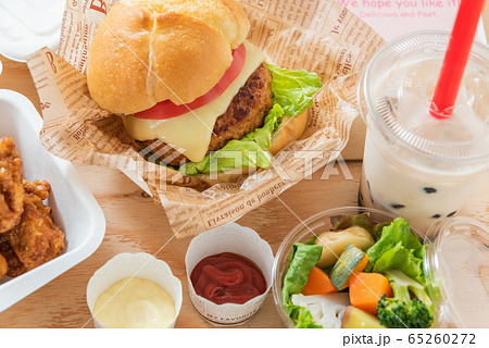 ハンバーガー タピオカ デリバリーフードのイメージ