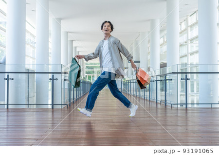 ショッピングモールでショッピングをする若い男性