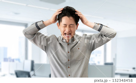 オフィスで頭を抱えて悩む男性ビジネスマン