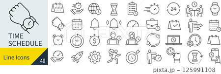 ベクターでモノクロのタイムスケジュールに関する線画アイコンセット