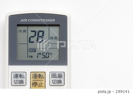 冷房は28℃に(ちょっと涼しげなエアコンのリモコン)