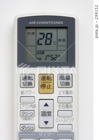 冷房を28℃に設定する女性の手