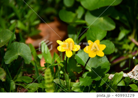 キンポウゲ科ヒメリュウキンカの開花