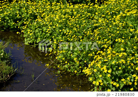 自然 植物 リュウキンカ、湿地や水辺に群生。春先から初夏にかけて黄色い花をつけるようです