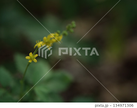 野山に生えるキンミズヒキの花の写真