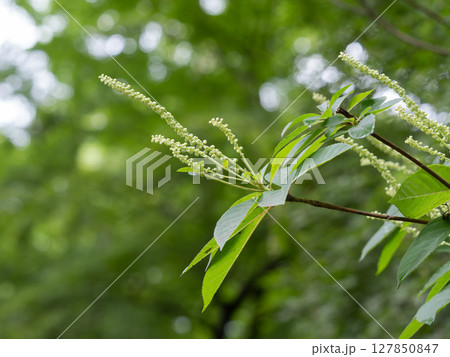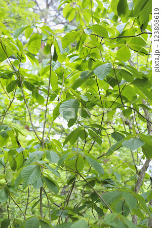 夏の若杉天然林 リョウブの木と木漏れ日 岡山県英田郡西粟倉村