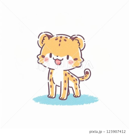 デフォルメタッチ、可愛いチーターのイラスト、キュート、アイコン、素材
