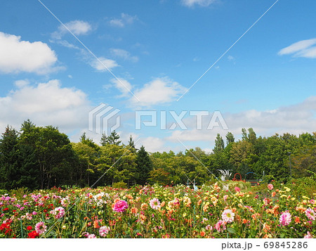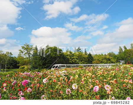 北海道の景色 百合が原公園のダリア畑とリリートレイン