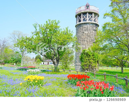 北海道の風景 百合が原公園チューリップとリリートレイン