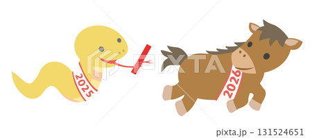 2025年ヘビから2026年馬へ 干支バトンタッチのイラスト