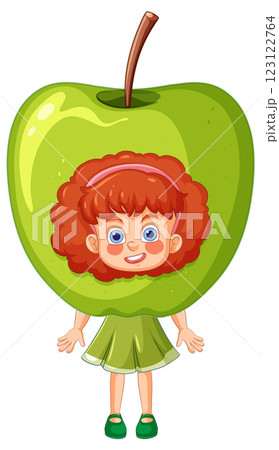 Green Apple character sporting sunglasses, flashing rock and roll hand sign with cheerful summer vibe