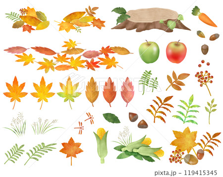 秋の手描きのイラストのセット/食欲の秋/かぼちゃ/ハロウィン