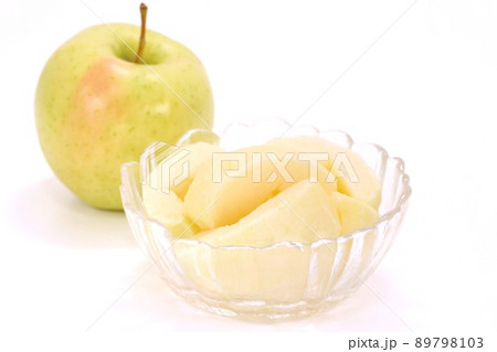 リンゴ 剥き カット デザート トキ ガラスの器 明るい背景