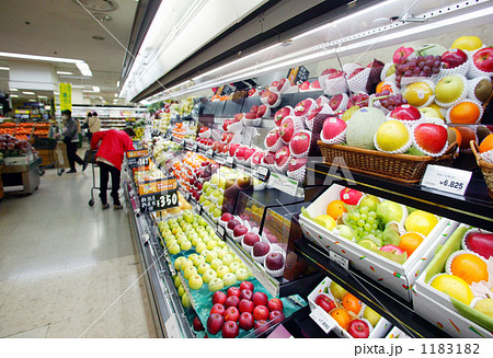 新鮮野菜 果物 陳列棚 りんご レタス オレンジ グレープフルーツ バナナ パイナップル パプリカ