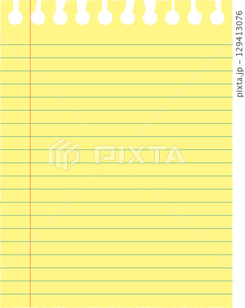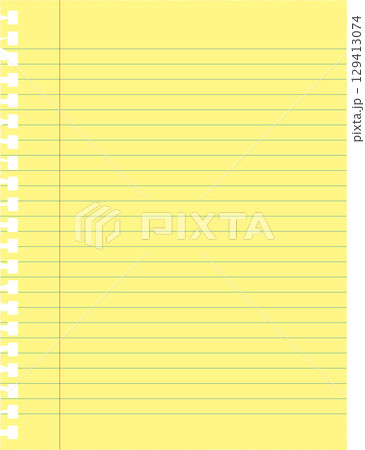 黄色いリーガルパッド風メモ用紙のイラスト|ノート、罫線、黄色い紙、文房具