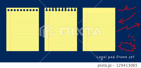 リーガルパッド風のノート背景・フレーム素材セット。横罫・方眼・穴あきなど、Webや紙面デザインに