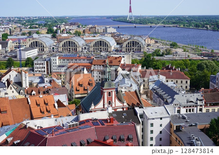 リガの聖ペテロ教会の塔から中央市場方面の眺め