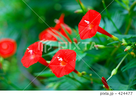 爽やかな緑に映える、真っ赤なルコウソウ(背景素材)ー1