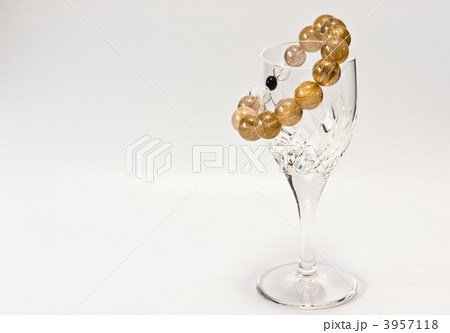 クリスタル・ワイン・グラスの中の金針水晶ブレスレット(横-右)