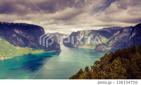 Aurland fjord from Stegastein view point, Norway