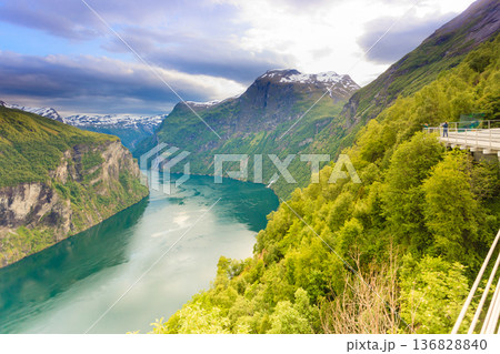 View on Geirangerfjord from Flydasjuvet viewpoint Norway