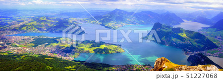 【空撮写真】スイス、ルツェルン湖 上空から見る景色