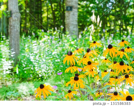 夏のガーデンで咲くルドベキア ゴールドスラム