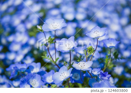 春の日差しに爽やかに咲くネモフィラ・マクラタ