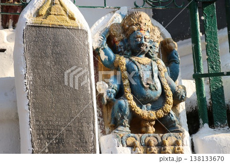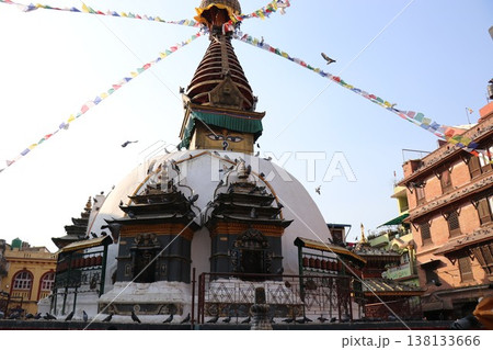 ネパール カトマンズの広場に建つ仏教寺院のストゥーパのカーススワヤンブ