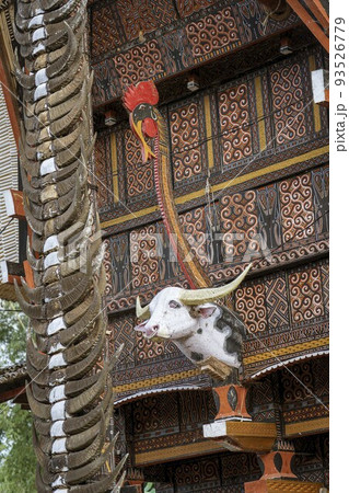 Java, Indonesia, June 13, 2022 - Bulls head mounted on the front of a Toraja home