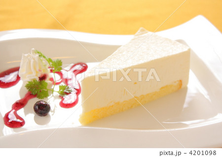 レアチーズケーキと紅茶、洋菓子ケーキデザートのティータイム。