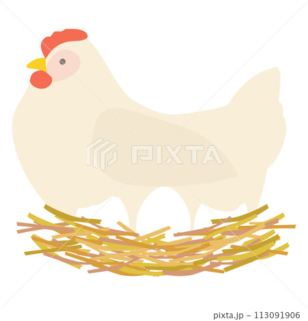 巣の中で卵を抱く一羽の雌鶏