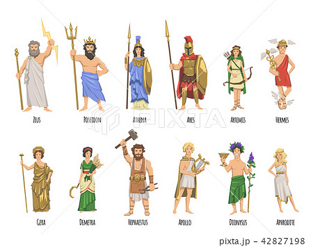 Pantheon of ancient Greek gods, mythology. Set of characters with names. Flat vector illustration