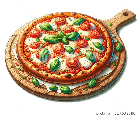 A delicious pizza with a golden crust, melted cheese, and savory toppings. Perfect for food-related designs, menus, or Italian-themed projects, capturing the essence of a classic comfort dish.