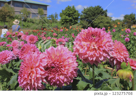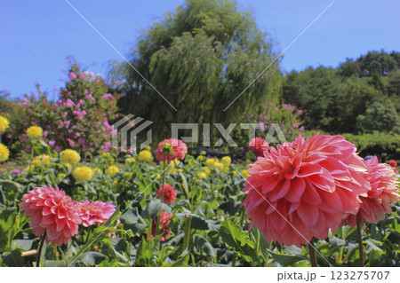 ダリアの花がいっぱい咲くカラフルで楽しい素材