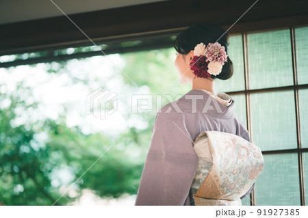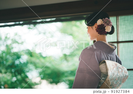 夏着物の若い女性