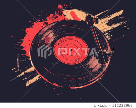 Gramophone with vinyl record on grunge background. Vector illustration.