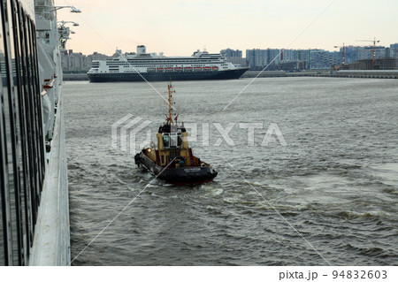早朝のサンクトペテルブルク港の大型クルーズ船