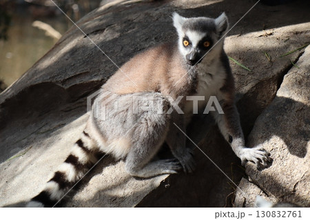 日光浴するワオキツネザル