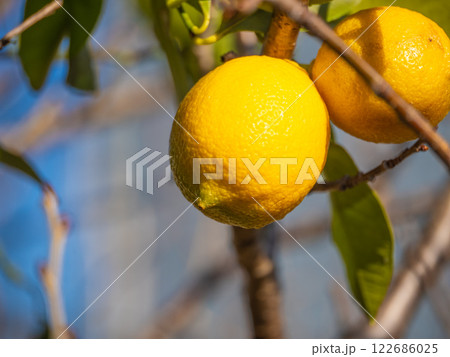 食材、フルーツのレモン、れもん、檸檬。国産のレモンです。
