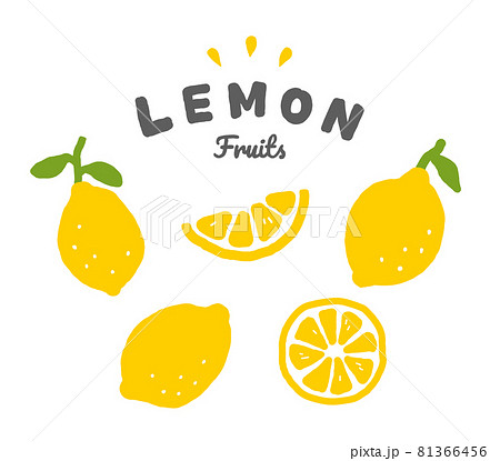 レモンの手描きイラストのセット シンプル フルーツ 果物 柑橘系 シトラス 夏 かわいい 果実 断面