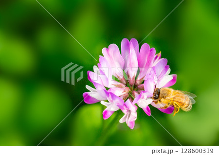 レンゲ畑のミツバチ 蜜蜂 レンゲソウ 蓮華草 ハチミツ 花 5月 季節 畜産 ビジネス 養蜂