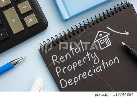 Handwritten note of rental property depreciation in a notebook.