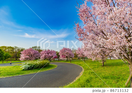 東京都 足立区 舎人公園 満開の桜とソリゲレンデ