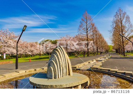 東京都 足立区 舎人公園 満開の桜と幼児広場