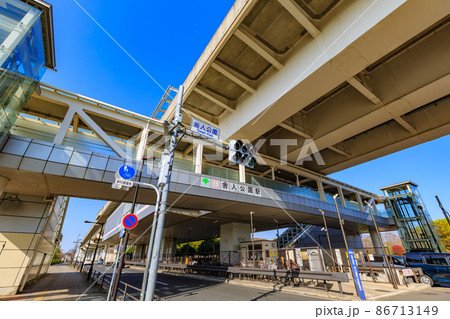 東京都 足立区 舎人公園 満開の桜と舎人公園駅